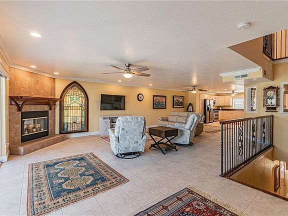 - Interior Features: Ceiling Fans(s), Eating Space In Kitchen, Open Floorplan, Split Bedroom, Walk-In Closet(s), Crown Molding, Solid Wood Cabinets, Kitchen/Family Room Combo, Solid Surface Counters, Built in Features, Window Treatments, Cathedral Ceiling(s)