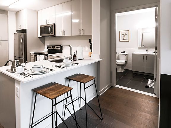 station, this upscale building offers high-end finishes and modern amenities. Enjoy