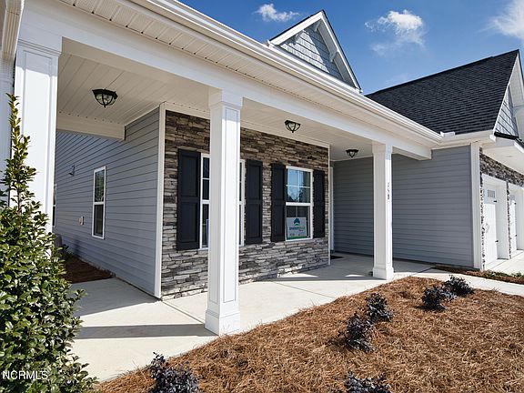 Move in today into The Granville built by Caviness & Cates in one of Hampstead's newest and fastest growing community, The Sanctuary at Forest Sound. This charming 2-story home with wrap around front porch includes 4 bedrooms, 2.5 baths and over 2800 sq ft of living space. Walk inside and you will notice the elegant dining room with coffered ceilings and picture frame wainscoting. The kitchen will feature timeless white cabinets, frost white quartz countertops, tile backsplash, double door pantry with wood shelving and stainless-steel appliances, including a natural gas range. Flowing seamlessly from the kitchen, is a large breakfast area and great room with natural gas fireplace. The covered porch with grill patio creates the perfect outdoor living space and is easily accessible through the Carolina Room. For extra privacy, the primary suite is located downstairs and includes a fully tiled 6-foot walk-in shower, double vanities, linen closet and walk-in closet with custom wood shelving. Finishing out the 1st floor is a ½ bathroom and laundry room/mud room with drop zone and extra storage just off the garage. Upstairs, you will find 3 additional spacious bedrooms with walk-in closets, full bath with double vanity and large open loft at the top of the stairs, perfect for a playroom, second living area or media room. Additional features in this home include LVP flooring and crown molding throughout the first floor living areas, oak tread stairs, epoxy garage floor, tankless natural gas hot water heater and gas HVAC. The Sanctuary at Forest Sound is centrally located in the heart of Hampstead. 15 minutes to Wilmington or Surf City/Topsail and just 1 mile off the Intracoastal Waterway. Future proposed amenity includes a boat storage area.