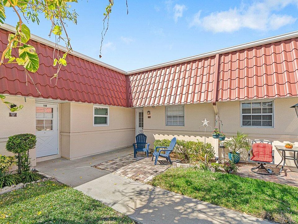 Spacious and well maintained 1 bedroom, 1 1/2 bath condo located in Covered Bridge. Large Kitchen with lots of cabinets, washer machine, white appliances with pass through window to dining area. Newer A/C (2020), complete SHUTTER panels, living & dining room that flows into the open convertible den/bedroom with wall to wall closet. Master suite, wall to wall closet, walk in shower and large vanity. Enclosed patio with vinyl windows. Maintenance includes cable/internet, water/trash, roof, exterior building, lawn/landscaping and common areas. *PER ASSN.: 630 minimum credit, No renting first year owned & 1 pet under 22lbs. Active Adult Community features: walking paths, scheduled activities, 2 heated swimming pools, billiards, exercise room, library, tennis courts, bocce ball, pickleball, shuffleboard, men's club, and much more. ASSESSMENTS WILL BE PAID IN FULL BY SELLER