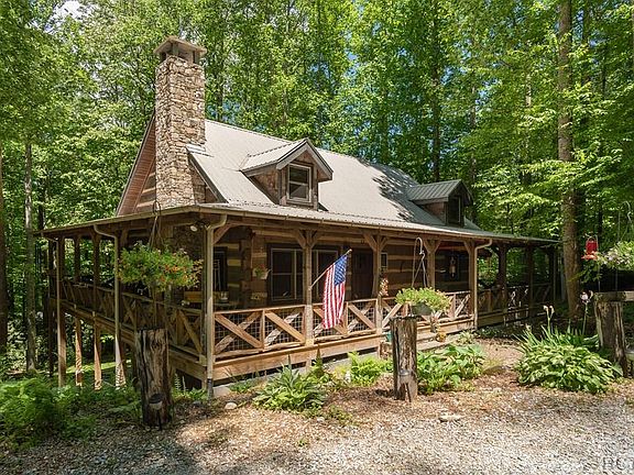 This rustic mountain log home is just a short stroll or golf cart ride away from Ralph J. Andrews Park, where families can swim, fish, canoe, or picnic by the lake, with a public boat ramp for added convenience. The spacious master is on the main floor,and a wraparound covered porch extends the living space and provides cozy areas to sit in a rocking chair enjoying the cool mountain summer.The property is gently sloping and adjacentto a public road, so there are no road or POA fees to worry about.This home must be sold with an adjacent lot which accesses the driveway and well (MLS# 93191).