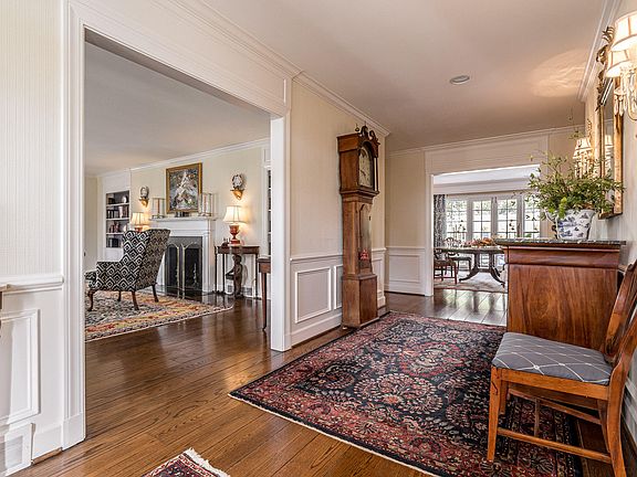 Elegant Jeffersonian Cape in Country Club section of Indian Hills sitting on just under an acre private lot. You are welcomed into the foyer with a view to the formal dining room with French doors that open to a limestone patio with fountain. The living room has a fireplace, built-in bookcases and floor to ceiling windows, which connects to the spacious family room with built-ins , crown molding and a gas log fireplace, wet bar and is open to the kitchen and the living room. The beautifully updated eat/in kitchen also has a gas log fireplace, built-in bookcases and sitting area. Other features of the custom painted white cabinet kitchen which is a cooks dream comes with a 48'' Majestic Ilve gas range, Advantium oven, marble topped black painted kitchen island has seating space for 4. Marble countertops, plumbed coffee pot, icemaker, bar fridge, and herringbone hickory wood floor with windows overlooking the patio. There is a fabulous screened porch with fireplace just off the family room, which opens to the patio and connects to an oversized architect designed carport. Also on the first floor is the primary bedroom and bath and two additional bedrooms each with private baths all with hardwood floors. The second floor features 2 additional bedrooms with a connecting bath. The lower level has a second family room with fireplace and built-in bookcases and cabinets, a laundry room, full bath, mudroom connecting to the 2 ½ car garage, a dark room and utility area. Ample parking for guests when we can have guests...