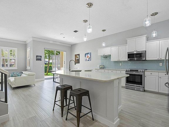 Welcome Home! This spacious Key West style town home is the epitome of modern coastal living. Completely renovated throughout with a reimagined primary bath designed in 2023 and a huge primary suite with walk in closet and custom cabinetry.The home is positioned close to the community pool directly on the Intracoastal. A desirable end unit bringing privacy & an abundance of natural light. Expansive open floor plan with remodeled kitchen including stainless appliances, quartz countertops and glass backsplash. This residence is a smart home and features keyless entry, electric blind, crown moulding, plantation shutters & complete hurricane protection. Extended pavered patio makes this home complete-a wonderful place to barbecue with your friends and enjoy our beautiful Florida weather! Barefoot Cove is a beautiful, intimate pet friendly Intracoastal community. Located just minutes to the charming shops and restaurants on Ocean Ave in Lantana and just over the bridge to the beach. Perfectly situated-head South to trendy Atlantic Ave in Delray or North to famous Worth Ave in Palm Beach. Move in Ready! Perfect for full time resident or secondary home.