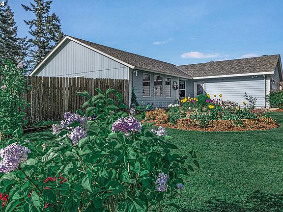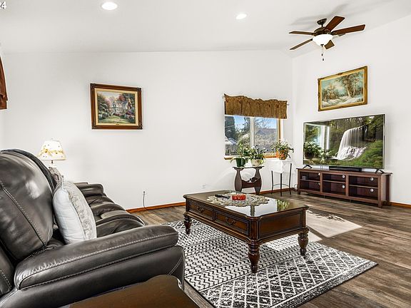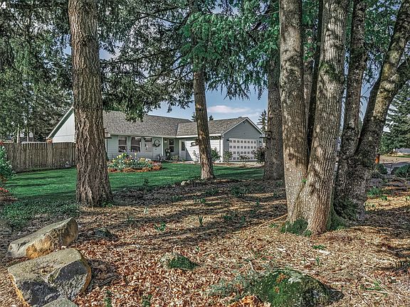 Lovely 1-level 2001-built home on a large nearly 1/3 of an acre park-like lot in the beautiful Lawton Heights bluff neighborhood of Oregon City! This light and bright open-concept floorplan features vaulted ceilings, newer luxury plank floors throughout the living room and great-room areas, a spacious kitchen with granite counters, a breakfast bar, pantry, and newer stainless steel appliances which include a gas range, refrigerator, dishwasher, and a built-in microwave. A large dining area and additional nook complete the space. A sliding glass door leads to a newer covered patio, in a relaxing, serene setting. The beautiful large fenced backyard features stunning flower gardens, plush grass, a workshop with a private additional bonus room that could be perfect for a hobby room or office or more! An additional shed, a greenhouse, a charming fenced-in garden area, and an extra-wide gate for RV access, etc., to the additional RV parking area, with RV hook-ups, too, in the back of the private large backyard! The beautiful primary bedroom suite includes a bathroom and a walk-in closet. An oversize garage and a large driveway including RV parking, newer roof, newer solar panels resulting in a recent low electric bill of $18, newer heat pump/furnace, newer tankless water heater, newer windows, wired for a generator, and much more! A must see!