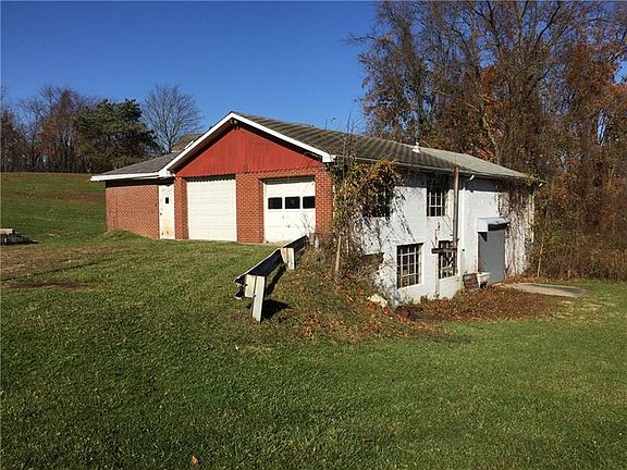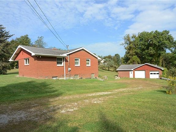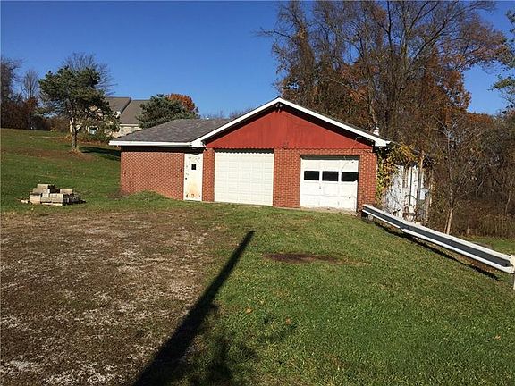 Solid 3 bedroom brick home on 2 acres. Open kitchen, dining room floor plan, with 2 stone fireplaces one located on the main floor and one on the lower level. Conventional floor plan, covered rear porch and potential for patio off the dining room. One car integral garage with the house plus additional detached garage including (2) 8', (1) 10',(1)9' overhead doors with 2 levels of serviceable storage/garage space with points of entry on both levels. Includes crane in one portion of the garage.