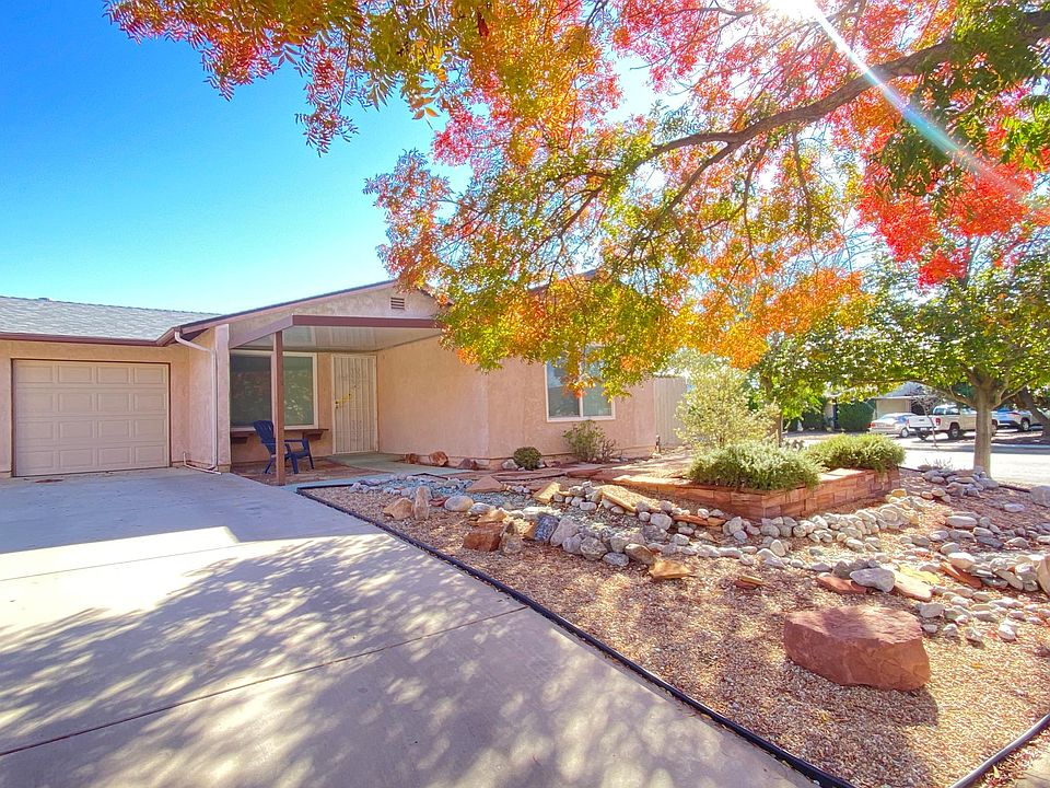 CHARMING TWO BEDROOM, ONE BATH HOME WITH A BONUS ROOM AND SUNROOM LOCATED IN A 55+ COMMUNITY! THIS HOME OFFERS MULTIPLE AREAS TO ENJOY. THERE IS AN ADDITIONAL ROOM OFF THE KITCHEN GREAT FOR A DEN OR OFFICE. QUAINT KITCHEN WITH CONVENIENT LAUNDRY NOOK WASHER AND DRYER INCLUDED AND A NEW STOVE AND VENT HOOD.. CENTRAL A/C AND HEATING. SPACIOUS SUNROOM AND AN ATTACHED ONE CAR GARAGE WITH LOTS STORAGE. THERE IS NEW INTERIOR PAINT THROUGHOUT AND NEW BLINDS THROUGHOUT THE PROPERTY. Property has drought tolerant landscaping. Washer and dryer included. Property has a bonus room and sunroom.