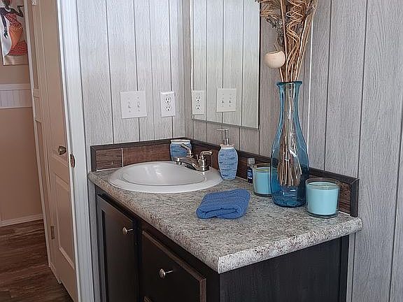 Beautiful 3bd/2 full br, Open floor plan with barnyard sliding pantry door, and an electric fireplace in the living room. The property sits on a .51 or 1/2 lot. Home/land package deal. Quiet neighborhood, with no HOA fees.