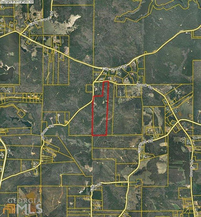Hunter's Delight!-or- buy to build that dream home! 54.8 acres, mostly wooded with some clear areas. Stream on property. Several hunting sites with deer stands already in place. Well on property. Double paved road frontage on Bottoms and Brooks Roads. GAMLS Supra lockbox on gate on Bottoms Rd.