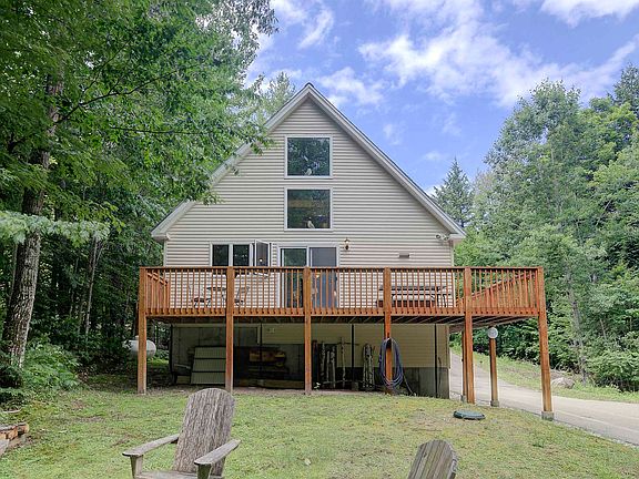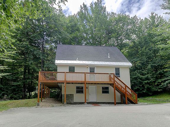 Contemporary chalet in Conway with access to swimming, hiking, biking, skiig and all Mount Washington Valley has to offer. Well kept home with recent upgrades that include a newer deck, roof, flooring and complete interior painting. Enter into a large open area with vaulted ceilings and lots of natural light and a gas fireplace to make it feel cozy, too. Go easily from the kitchen, living, dining area to a large deck on the front that is perfect for BBQ and relaxation. The first floor features two bedrooms and a full bathroom. Overlooking the living area is the primary bedroom with a private bathroom. This home has all the benefits for primary or secondary home ownership with bonus access to swimming at local beaches while being only minutes from the heart of Mount Washington Valley. .