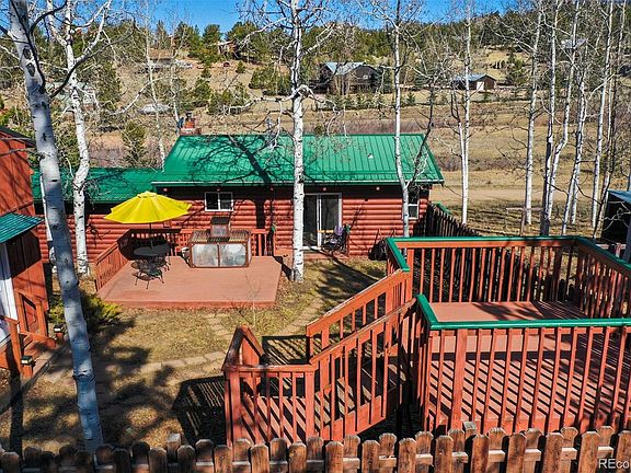 Outdoor adventure and rustic charm are the perfect blend at this charming log cabin retreat nestled near the scenic Eleven Mile Reservoir! Minutes to the Dream Stream, world class fishing, climbing, hiking, camping, stargazing, birdwatching and more. This inviting 2 bed, 1 bath haven offers a peaceful sanctuary ideal for outdoor enthusiasts and nature lovers. Step inside to discover a warm, open-concept living space with natural wood finishes and a cozy fireplace. Two bedrooms provide a restful escape after a day of adventure. The kitchen is efficient and offers lots of space for preparing meals. Relax on the sun porch while enjoying your morning coffee or unwinding with a glass of wine while enjoying the panoramic views. The outside space features an Aspen Grove, a shed, a raised deck for stargazing and a 32 X 20 garage to house your hobbies and toys. There is room for RV/boat parking and an outdoor fire pit to enjoy the beautiful summer evenings. Don't wait to see this incredible property where you can experience a year-round getaway for adventure and relaxation.