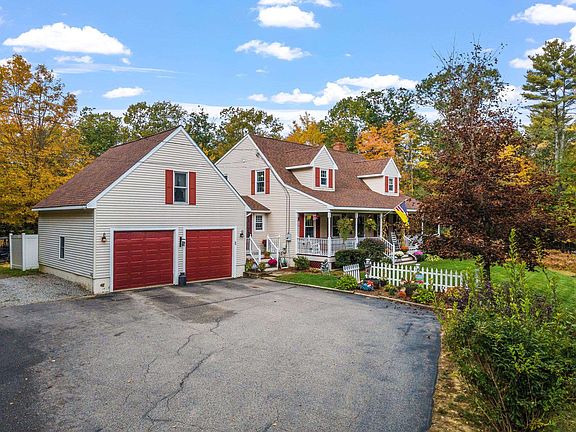 Meticulously maintained Cape, situated on a private 2.54 acre lot, offering 4 bedrooms, 2 bathrooms, attached 2 car garage and approximately 2,400 sq/ft of living space. This home is located on a private lot surrounded by mature trees with views of the Tioga Stream, and abuts snowmobile trails. Enter the home through the spacious mudroom with pine accent ceiling, plenty of room for seasonal garbs, and direct access to the back deck. Updated kitchen featuring large island, granite countertops, hardwood floors, and stainless appliances. Enter the cozy dining room with wainscoting, hardwood floors, this is ideal for special occasions and holiday gatherings. Cozy up with your favorite book in the grand living room with a wood burning fireplace and tons of natural light. First floor bedroom is currently being used as a family/music room and can easily be converted back. Newly built sunroom with pine accent ceilings and windows throughout is a great spot to sit and enjoy the views. Full bathroom completes the first floor. Retreat to the upper level where you will find the spacious Primary bedroom, two additional bedrooms, and a full bathroom. The basement is partially finished providing extra living and storage space. Plenty of outside space, large yard with beautiful gardens, and farmers porch overlooking the stream. Close to Gunstock Resort, restaurants, shopping, theatres, Lakes and many other Lakes Region attractions. AGENTS: SEE NON-PUBLIC REMARKS BELOW REGARDING DOM.