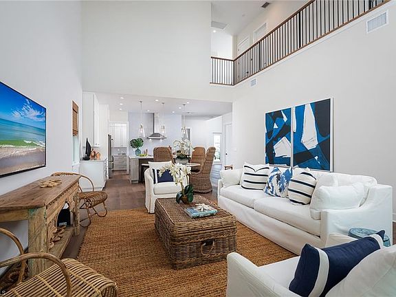 Seller Financing Available!!!! Introducing a stunning new build, completed in 2023, in an exclusive community of only 20 homes. Positioned just a short drive from downtown Naples and its pristine beaches, this property offers the ideal combination of luxury and convenience. This never-lived-in residence sits on a premium oversized corner lot in a cul-de-sac and features a long-lasting metal roof and impact-resistant doors and windows. The grand two-story foyer welcomes you into a spacious, light-filled open floor plan with elegant upgrades throughout. The gourmet kitchen boasts quartz countertops, upgraded cabinets, a Blanco sink, commercial-grade appliances, and a butler’s pantry complete with a beverage center. The first-floor primary bedroom offers direct access to the pool area and features dual walk-in closets, while the luxurious primary bath includes dual vanities and a relaxing soaking tub. The second floor includes two bedrooms, each with en-suite baths, along with a versatile den and flex room that opens to a second-level lanai, offering expansive golf course views. Outdoors, enjoy your custom pool adorned with upgraded glass tile and a shell stone lanai deck. The backyard is enhanced by an aluminum fence and custom landscaping, while the home is plumbed for an outdoor kitchen, ideal for creating a serene outdoor retreat. Additional features include engineered hardwood flooring, custom closets, custom stair railings, custom light fixtures, fans and hardware, and a large laundry room with Whirlpool appliances. Seahorse Cottages at Cambria is a low HOA community, just minutes from the vibrant heart of downtown Naples with fine dining, shopping and renowned white sandy beaches.