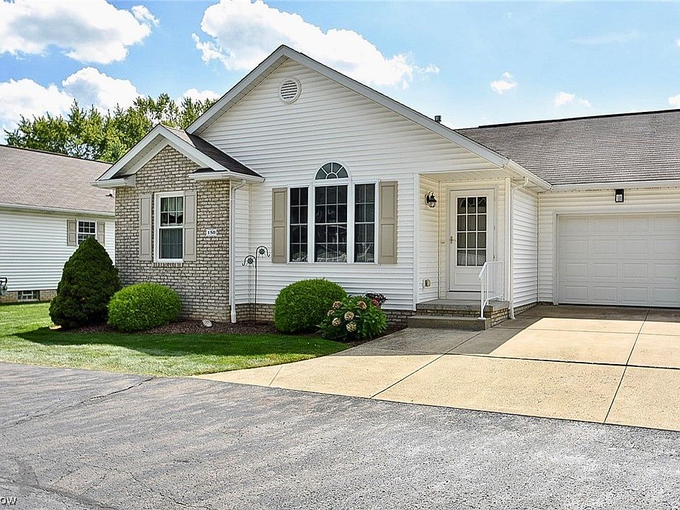 Immaculate 2 bedroom 1 1/2 bathroom ranch condo in a 55 and older condo community. Entry leads to the light filled great room featuring a cathedral ceiling and an arched window. Dining room is open to the fully applianced kitchen. New neutral plush carpet in great room hallway and both bedrooms. Ceiling fans in great room and bedrooms. Washer and dryer in the first floor laundry conveys with the property. Full basement and a one car garage. Immediate occupancy!