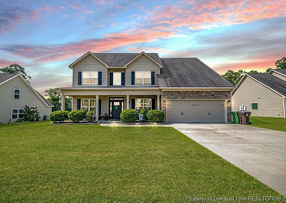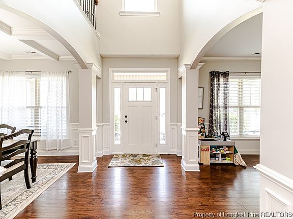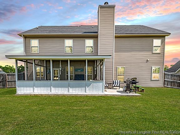 Beautiful and well maintained home located in the desirable Gated Golf Community of Carolina Lakes. Enjoy the neighborhood's lakes, pools, and many amenities with the whole family! 5 Bedroom, 3 bath home with an open floor plan you will have to love. Enjoy the formal dining room with coffered ceilings, a perfect sitting room for a playroom or an office. The first floor offers a bedroom and a full bath for you guests too. Upstairs you will find 4 spacious bedrooms with all having vaulted ceilings. The loft area is a great flex space away from the main living area. Step outside your back door to a 19 x 15 screened in porch with a patio just next to it for your grills. The backyard offers so much privacy and is completely fenced in. There is so much storage in this home too. Just a GREAT PLAN!