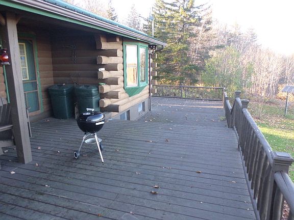 THIS 2BEDROOM LOG HOME SITS ON A FULL BASEMENT WITH A GAS STOVE AND CAN EASILLY BECOME MORE LIVING SPACE-THIS UNIQUE HOME SITS ON 120AC OF GREAT HUNTING-VIEWS AND OVER 1400 FT ON THE CHATEAUGAY RIVER-THIS PROPERTY IS TOTALY OFF THE GRID POWERED UP BY SOLAR PANNELS WITH 12 BATTERY BACKUP-HEATED WITH PROPANE MONITOR-WOOD STOVE ON MAIN FLOOR AND PELLET STOVE IN THE BASEMENT-HAS A 5000 BACKUP GENERATOR THAT POWERS UP THE HOLE HOME,HUGE 45X24 DOUBLE TIERED DECK OVERLOOKING THE 100AC-2CAR DETACHED GARAGE-WOODSHED-AND GENERATOR OUTBUILDING,ARTESIAN WELL AND 1,000 GALLON SEPTIC-DIRECT TV-MIFI WYFY THROUGH VERIZON,IF YOU LIKE THE OUTDOORS AND BEING REMOTE AND LIKE TO HUNT-FISH-4-WHEELING THIS IS IT.