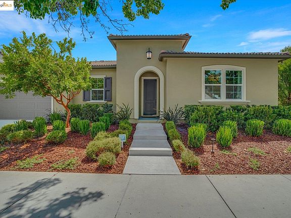 Welcome home to this highly upgraded designer showcase. You will find over $366,000 in options proudly displayed. This former model home has yet to be lived in and offers an incredible display of craftsmanship and comfort. Custom tile and wall features in the entry provide access to 3 bedrooms, which are all en-suites. The office has a smartly featured built-in workspace area. Opening into the great room you will find more custom built-ins, a stacking slider, upgraded flooring and countertops with a gorgeous waterfall finish. The designer light fixtures are notable throughout this home and add to the glowing ambiance. The primary suite is spacious and offers a generous walk-in closet, dual sink vanity, and an impressive custom tiled shower adjacent to the soaking tub. A bonus space for a home gym or creative area makes this floor plan so functional. You will find solar here as well as many energy-efficient features! A lovely landscaped yard features low-maintenance living with incredible outdoor spaces perfect for entertainment. Located in the sought-after Orchard Trail community in Brentwood with convenient access to downtown and shopping as well as Vasco Road. Call for a private tour today!
