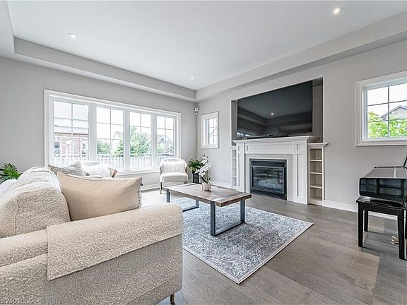 **Welcome to 158 Coopershawk St** This gorgeous well-maintained home features an attractive brick exterior with a double car garage, 4-car driveway with no front sidewalk. A welcoming foyer leads to a spacious 9-foot ceiling living room with engineered hardwood flooring and gas fireplace. Adjoining these rooms is a gorgeous kitchen stainless steel appliances, granite countertops, walk-in pantry, next to the dining area to the sliding doors to the large interlock patio and fully fenced backyard. Main floor powder room. The second floor features four large sized bedrooms and two full bathrooms. The master bedroom offers a walk-in closet, and luxury 5pc ensuite bathroom. Second floor laundry. Newer engineered hardwood flooring throughout the entire upper level. Fully finished basement offers more entertaining space, den, and 3-pc bathroom. Great schools, minutes to amenities, shopping plaza, HWY 85, and walking distance to Kiwanis Park, recreational trails, and Grand River. 2023-07-10