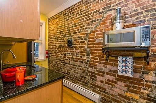 Stunning 2nd floor condo located in Jeffries Point. One of the prettiest units youâve ever seen--nine foot ceilings, crown molding, amazing exposed brick on two sides, & 5 panel barn doors! Chefâs kitchen with stainless steel appliances & stone counter tops, Frigidaire stove with stainless steel hood vent. Many updates including state-of-the art Navien heating system, all replacement windows, Italian swivel faucet in bath, 2 Casablanca ceiling fans, Prestige custom wood blinds, & more. The Association is solid with low condo fees & high owner occupancy. Laundry (no charge) & large private storage unit in basement. Steps to dog park, YMCA, Paris Street Pool, both Airport & Maverick MBTA stations, Piers Park, East Boston Shipyard, KO Pies, Downeast Cider House. Minutes to Downtown Boston & the best of historic Boston: excellent dining, theatre, museums, nightlife, New England Aquarium, athletic, educational events, and neighborhood community.