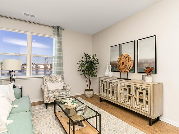 The Elle floor plan offers plenty of space with room to grow. Featuring a first floor primary bedroom suite with generous bath, walk-in closet, and linen closet. The kitchen boasts a large island with breakfast bar and opens to the casual dining area and spacious living room. Granite countertops, stainless Whirlpool appliances, and beautiful and durable vinyl flooring throughout the main living areas all included! There is also a wonderful flex space on the main level that could be a dedicated home office or a formal dining room. Sliding glass doors off the dining area lead to the rear covered porch for added outdoor living space. Upstairs offers large secondary bedrooms plus an expansive secondary living area. It gets better- this is America's Smart Home! Control the thermostat, front door light and lock, and video doorbell from your smartphone or with voice commands to Alexa. Tankless gas water heater and a two-car garage with garage door opener also included. *Photos are of a similar Elle home. (Home and community information, including pricing, included features, terms, availability and amenities, are subject to change prior to sale at any time without notice or obligation. Square footages are approximate. Pictures, photographs, colors, features, and sizes are for illustration purposes only and will vary from the homes as built. Equal housing opportunity builder.)