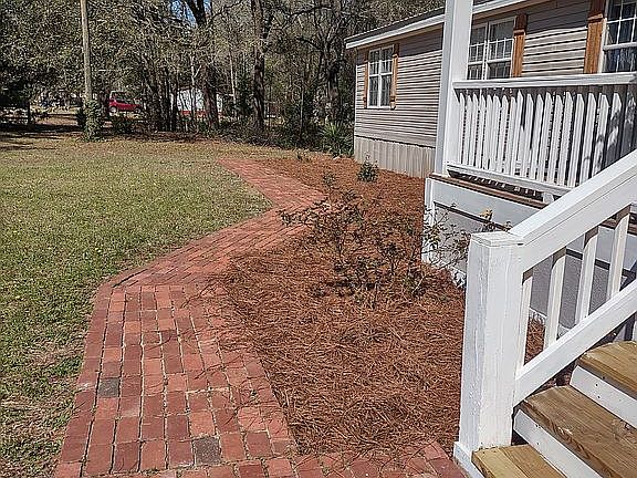 This beautiful, manufactured home on 1.1 acres has 4 bedrooms and 3 bathrooms. Covered front porch perfect for enjoying nice evenings. Large living room with wood burning fireplace and kitchen with a separate dining room. There is a walk-in closet in the master bedroom. Sliding glass doors lead to a back deck overlooking a small creek at the back of the property. There is a large outdoor storage building as well as plenty of indoor storage. Large laundry room that can double as a mudroom. This home has been updated in the last year with a new roof, new flooring, and new paint. Stove, refrigerator, and dishwasher are included. This home is in the Headland school district. It is 14 minutes from The Square in Headland. 10 minutes from Columbia, AL and the Chattahoochee River. 22 minutes from The Circle in Dothan. So, you get beautiful country living while still being close to everything you could need.