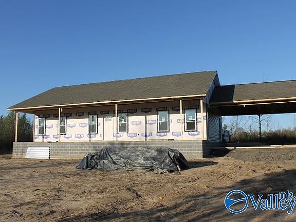 100% financing available on this New Home Under Construction-Fort Payne Mailing address with Sand Mountain Home located off County Road 85 near Henagar! This 3 bedroom 2 bath with open floor plan, split bedroom design. Light, bright and airy is exactly the look this Home will have once completed. Upgraded features are 9 foot ceiling, on demand water heater, lvp flooring throughout, crown molding in living room and kitchen, large full length covered front porch, 12x12 rear deck, concrete driveway with sidewalk!! Do Not Delay to get this home on your list to view if it fits in your budget. Beautiful setting with a sunset front porch!!! Priced at $239