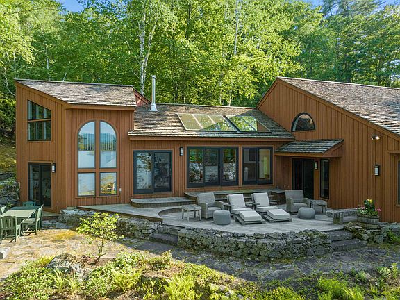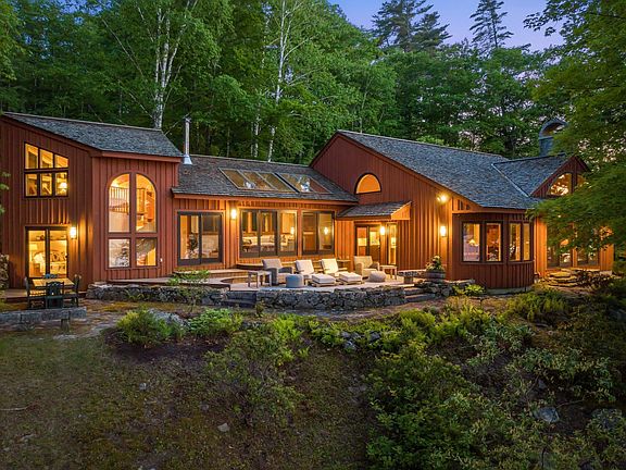 Welcome to Sunset Point on Squam Lake! A long wooded driveway leads you to this stunning contemporary home situated on 4.3 private acres along 510' of pristine shoreline. This property undoubtedly has one of the most breathtaking views on the lake, from the Squam Range to Mt. Chocorua to Red Hill, with summertime views of both sunrise and sunset. Unique custom features include an oversized Vermont fieldstone fireplace, dramatic vaulted ceilings, mahogany gourmet kitchen, large study with fireplace and built in bookcases. A primary bedroom with walk in closet and dressing room, private guest wing with sunny sitting area and woodstove, and a spacious built-in wine cellar. The home’s windows, deck and stone patio provide a panoramic yet completely private view. Hand-crafted stone walkways built by the legendary King family lead down to the waterfront area, which features a large U-shaped wood dock and a magical lakeside stone patio. From there a walking path leads along the property’s shore and up a lushly wooded slope. Association tennis courts are located along the neighborhood’s walkable road, and charming Holderness Village is only a five minute drive away. With easy access to regional ski resorts, this special home is a year-round paradise!