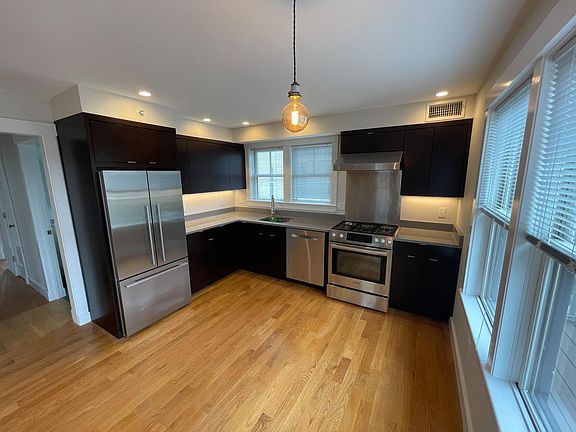 A beautiful third floor unit right on the Cambridge/Belmont line. This updated two bedroom unit features hardwood floors throughout, stainless steel appliances, in-unit washer and dyer and stunning views from the front and back balconies! Enjoy easy access to the Fresh Pond Mall, Fresh Pond golf course, Cambridge reservoir bike and walk path, as well as close proximity to Huron village! Tenant pays for all utilities except water. 1 month Broker fee is due at signing. No storage. No pets. No outdoor space.