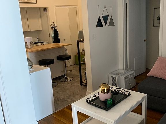 Spacious real two bedroom apartment located a few blocks away from the train and bus. One bedroom fits a full size bed , and the second can fit a queen.Both bedrooms can accommodate a desk and dresser. Closet space is abundant. The kitchen is newly renovated. Full bathroom with bathtub/Shower. Separate living space that can fit a couch comfortably and tv stand. Heat and hot water is included. No pets