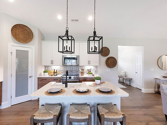 Caviness & Cates popular ranch plan "The Carver" in our Maggie Way community! Exterior has front porch & back deck perfect for relaxing. Floorplan features full, open, spacious great room. The open kitchen features granite countertops, white cabinets, and large island. Owner suite has a large WIC , tray ceiling. Both bathrooms have a double vanity. Dining room has upgraded coffered ceiling & wainscoting. This home features split plan bedrooms .Great entry way to greet your guest. AT&T fiber ,county taxes only and so much more! Come see what Maggie Way has to offer!