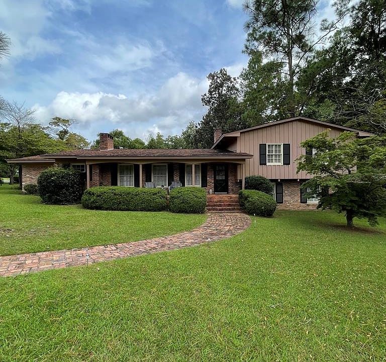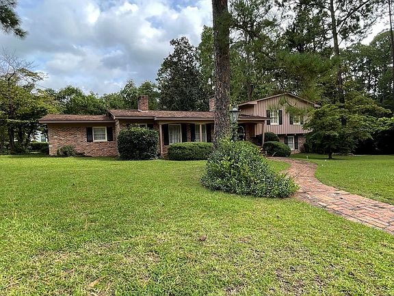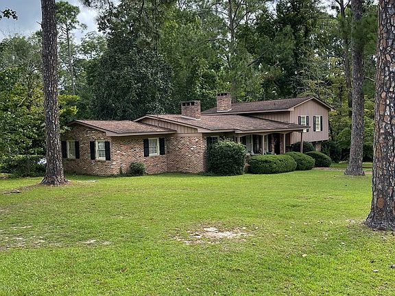 Here's your opportunity to have one of the most unique homes in McRae. The home, located in a well-established section of town sits off the street in the comfort of pine and plant and flower life giving the home a private feel. The home is very well built with brick and the best woods available. Through the front door you have a formal living room that is both spacious and inviting. Original hardwood floors and fireplace give it a cozy touch. Behind the living room you have the kitchen, dining and sitting area. This room has beautiful wood walls and exposed beams in the ceiling. The kitchen cabinets match the wall seamlessly. The sitting area has a gas log fireplace that promises to keep you cozy. The right side of the home has a two-level split. The lower level is an open room that is perfectly suited for children and teenagers, or a hobby/mancave. This den has built in bookshelves as well as a sizeable utility/storage room. The upper level houses the bed and bathrooms.