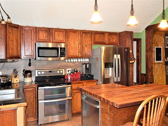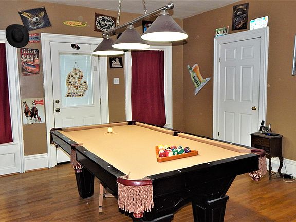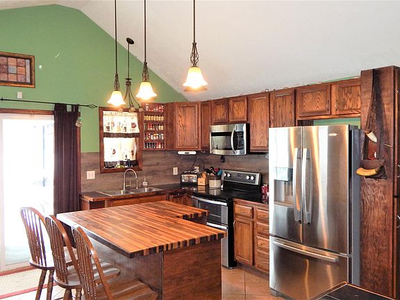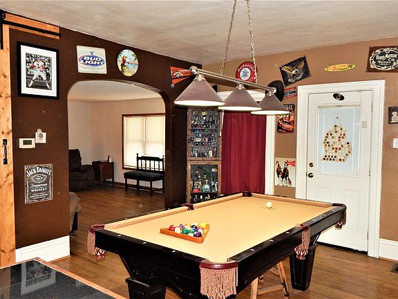 Country Style Home with a Contemporary Open Floor Plan Twist! This home features 2071 square feet of living space on 1.29 acres with 4 bedrooms, 1.5 bathrooms, open eat-in kitchen with custom center island, stainless steel appliances and many storage cabinets, some hardwood floors, large living room, dining room/entertainment space with bar and pool table area, main floor laundry, first floor bathroom with large soaker tub and separate shower, rear deck, front porch, NATURAL GAS! and a 32x48 pole barn.