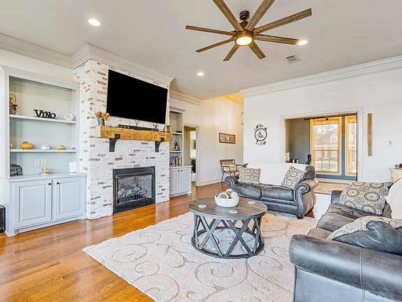 This East Shore beauty offers indoor functionality with outdoor fun in the Frenchman’s Bend subdivision. Inside the 4 bed 3 bath home, you’ll find an inviting open floor plan with wood floors, thick crown molding, arched doorways, and exposed brick details. The kitchen is designed for everyday living and entertaining with granite countertops, stainless steel appliances, a walk-in pantry, and abundant cabinet storage. The spacious living room features built-ins and a cozy gas fireplace, while a flexible bonus space offers the perfect spot for a home office or kid’s playroom. The triple split floor plan ensures privacy for everyone - featuring one bedroom and bath near the garage side of the home, two bedrooms joined by a Jack-and-Jill bath, and a spacious master suite overlooking the backyard. The master bath offers dual sinks, a jetted tub, shower, and a large walk-in closet. Outdoor living takes center stage with a sparkling saltwater pool large enough for a volleyball game or fun on the diving board. Additional features include a fenced backyard with two gated entries, a sprinkler system, tankless water heaters, security cameras, 2-car garage plus golf-cart bay with storage room, driveway with 2 additional parking pads & a basketball goal. Conveniently located and move-in ready—this home is ready for you to call home!