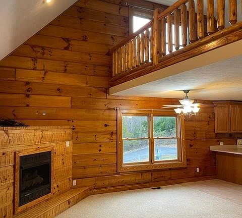 This hilltop log condo is nestled in a small, private, and quiet community (only six units total) in Woodlake Golf Course in Tazewell. The home sits on top of a mountain with views overlooking the golf course and surrounding country side. The home is just 7 miles from the center of Tazewell and New Tazewell. Close to LMU main campus in Harrogate, TN (only 16 miles away). In addition to the attached garage, the house also has a large basement with access from outside as well as inside, which is great for additional storage, a home gym, craft space, a work shop.