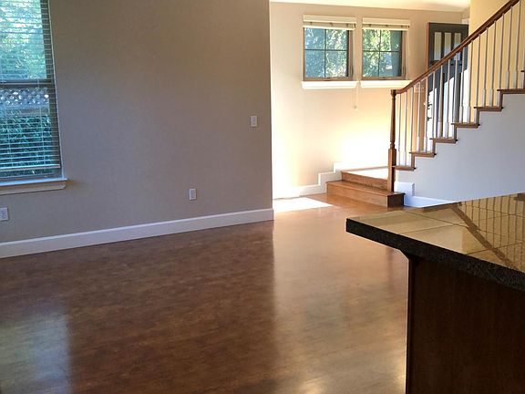 Custom built Craftsman Style Townhouse located under the oaks on the Iron Horse Trail, in beautiful downtown location close to trendy restaurants, shopping, farmer's market, bakeries, coffee houses and walking trails. Located on the desirable Westside of Danville with private access to the Iron Horse Trail. High ceilings, great room design with fireplace open to kitchen and dining, stainless steel appliances, granite counters, gas range, wine cooler,wood flooring, plush carpet, indoor laundry. Primary bedroom has huge walk in closet, ceiling fan, and shower designed for two. Two car garage with direct access to the house auto opener, small fenced yard, patio. No smoking. Pets on approval.