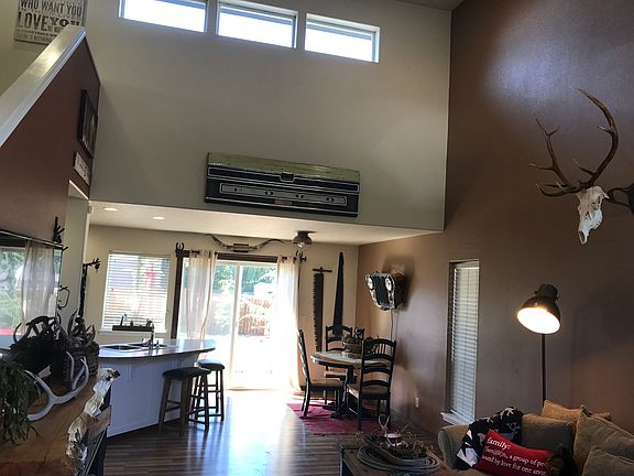 Spacious open floor plan with vaulted ceilings. New flooring throughout and updated stainless steel appliances. Unusually large master bedroom and bathroom downstairs. Two bedrooms and second bathroom upstairs. Multiple large walk-in closets. Plenty of storage space in closets, garage shelving, and spacious attic. Big, professionally landscaped lot with unique trees for a cool, private setting. Large RV parking and two car garage.