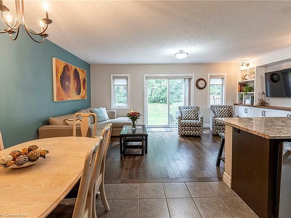 Welcome home to beautiful unit 7 158 Fife Road in Guelph, this private enclave of great townhomes, with 2,005 sqft. of living space is a spacious condo townhouse that will for sure win you over! As you walk through the front door, you'll find a welcoming carpet free main floor with a great entry and powder room, followed by a large open concept living room, dining room and kitchen area. Beautiful tiled backsplash, lots of countertops, stainless steel appliances, counter seating and great lighting make this kitchen perfect for cooking and entertaining. A huge living room with built-ins. Upstairs hosts an over-sized master bedroom with a walk-in closet, spacious ensuite with double sink with lots of storage. Two additional good sized bedrooms, a 4 pc bathroom and upstairs laundry to round out the second floor! Large and bright basement with a wet bar. Relax on the back patio & take in serene private views of mature trees behind—perfect space to BBQ with friends & family! Tall wood fence creates ample privacy. Backyard is maintenance-free allowing you to spend your time enjoying the space! . If you've been looking for a quiet, private, and great townhouse condo with LOW CONDO FEE, your search could be over! Easy access to 401 and Kitchener/Waterloo/Cambridge, with all the conveniences and charm of living in Guelph!