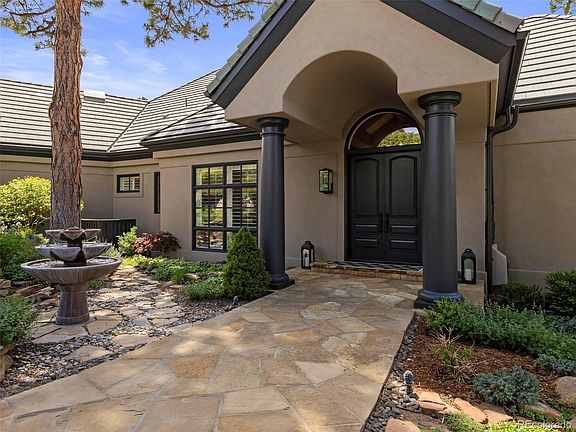Why vacation at The Broadmoor when you can live the lifestyle every day? This incomparable 4 bed | 5 bath Village at Castle Pines home, built on an incredible lot, defines elegance at every turn. The welcoming foyer immediately draws you into the impressive great room with vaulted ceilings, custom beams, and three French door access points to the covered deck. With too many updates to list, this open concept wood floor | beam accented masterpiece also features a generously sized kitchen including an eat-in dining area with private patio, hearth room, Wolf, Thermador, and Meile appliances, oversized island, suede caressed countertops, custom cabinets and wood tray ceiling. The amply sized owner's retreat, overlooking the stunning back yard, includes one of four gas fireplaces in the home as well as a huge spa bathroom with honed limestone countertops, his and hers vanities, and his | hers custom closet. The front dining room is perfect for entertaining family and friends. A large study, laundry room, huge pantry, powder room and 3 car garage complete the first level. The upstairs guest retreat includes a bedroom, hidden bonus room, walk-in closet, and full bathroom. Featured on the walkout lower level are a large recreation room with custom wet bar, additional owner's suite with huge spa bathroom and 2 walk-in closets, and fourth bedroom with en suite bathroom. Resting on a rare, nearly 1 acre private lot complete with multiple deck and patio entertaining spaces, built-in gas grill, outdoor fireplace, huge flagstone patio, lush landscaping, and large yard backing to The Country Club at Castle Pines, this outdoor oasis is a rare find in The Village. Oversized millwork. Ample windows and natural light fully let the outside beauty in. Unparalleled design and finish level. Lovingly maintained and cared for. Equally balanced entertainer's dream and family home. This spectacular residence is a must see and illustrates the word "luxury" in every conceivable way.