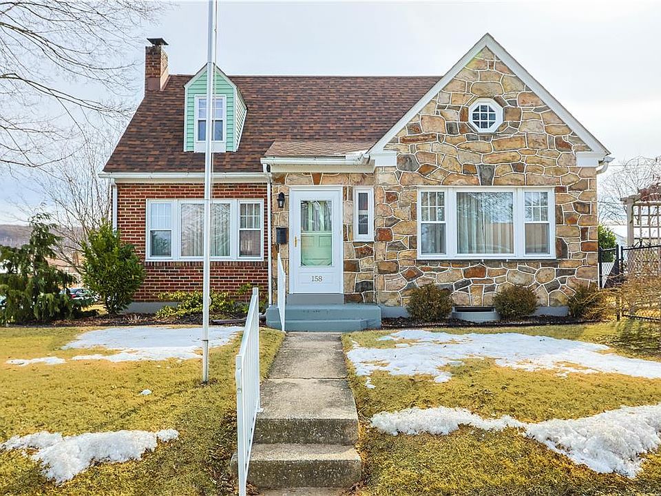 Solid Stone and Brick cape style home in Emmaus! Just what you've been looking for...a clean, well maintained property with lots of great features- newly remodeled kitchen - white cottage style cabinetry, quartz countertops, glass tile backsplash and stainless steel appliances. Center island with 3 stools stays and all appliances are included. Hardwood floors throughout. Bright sunny rooms, Large living room w/ pellet stove, Dining room w/ built-in cabinets and shelves. Covered porch, fenced-in yard and built-in Swim spa/hot tub for year round use! Two car detached garage with overhead storage. Full basement with a pellet stove, washer and dryer included. Great location close to schools, downtown Emmaus.