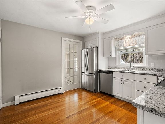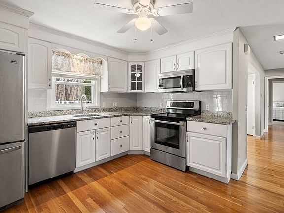 This delightful Ranch is situated in a prime Holden location, perfect for commuters and those seeking convenience. Step into the updated kitchen featuring stainless steal appliances, granite countertops, and a subway tile backsplash. The open floor plan seamlessly connects the living and dining areas, w/ gleaming hardwood floors. The living room features a bay window, a pellet stove insert fireplace w/ surrounding built-ins, while the dining room offers a picturesque view of the in-ground pool. The full bath is designed w/ quartz countertop, wainscoting, and ceramic tile. Enjoy year-round comfort in the 4 season room w/ heat and access to the back yard. The fully finished basement provides ample space for a 3rd bedroom, office, storage, or exercise equipment. It includes a full bathroom, a fireplace, laundry room and exterior access. The property features an in-ground pool, an attached 2 car garage, new bulkhead and beautiful landscaping w/ a privacy fence, deck and fenced-in pool.