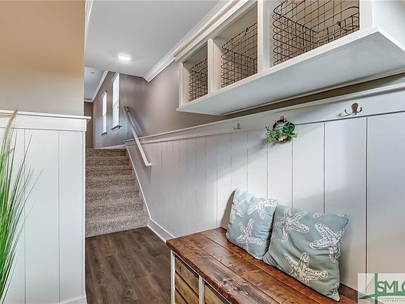 Gorgeous end-unit townhome with custom upgrades throughout! Featuring fresh paint, vinyl plank flooring, and beautiful shiplap detail, this well-appointed home offers a spacious living area and adjoining kitchen with granite counter tops, stainless steel appliances and an over-sized center island with breakfast bar. 2 guest bedrooms share a full bath on the second level while the 3rd floor master suite provides a quiet retreat including 2 walk-in closets and a private bath with double vanity, garden tub, and separate shower. Loft w/ built-in desk + foyer with custom built mudroom and coat rack. A must see!