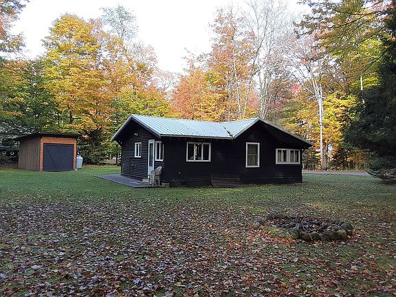 Turn key year round 2 bedroom, one bath home being sold mostly furnished. Close to skiing, mountain bike and hiking trails. Easy access to snowmobile trails and walking distance to town. Spacious back yard with firepit. New detached 2 stall garage. Drive in small barn with doors, big enough for two to three sleds and a second driveway to park your trailer. Seller is related to the listing Broker.