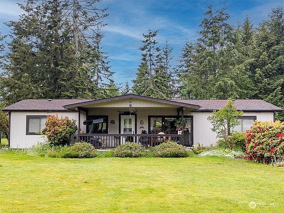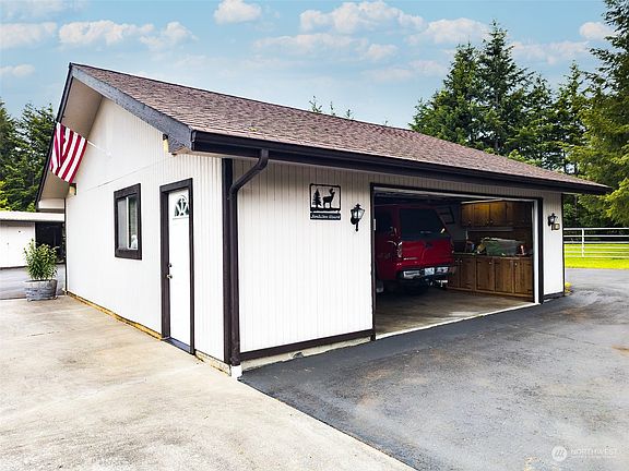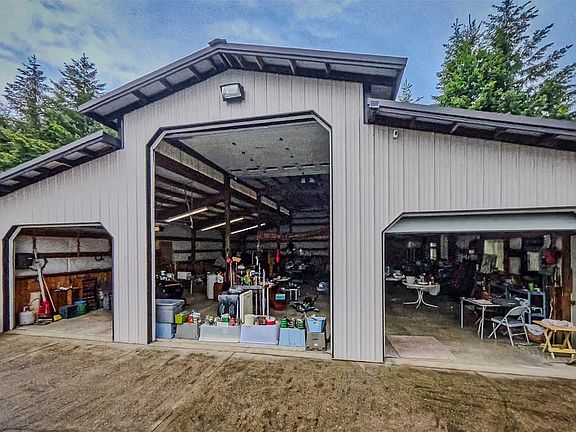 Welcome to your dream home! This charming 3 bed, 2 bath manufactured home is on just shy of 5 acres, offering a serene & spacious retreat. The property features a detached two-car garage w/thermostatic heat, insulation, large barn has commercial wiring, tons of storage, and cedar-lined walls. RV height door & two additional garage doors for extra vehicle storage.There's also an old barn perfect for animals. Enjoy partially fenced grounds, scenic pathways, a cozy firepit, a picnic/BBQ area, & a fenced veg. and fruit garden. The updated home boasts an open floor plan, large laundry room/walk-in pantry, heat pump, propane, & wood fireplace. Relax on the large covered front porch or the partially covered back porch. Your tranquil oasis awaits!