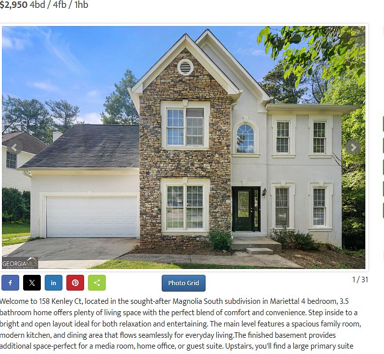 Very spacious home in East Cobb. Convenient to highways and shopping. Full finished basement outdoor deck Wheeler High School District Great price! Photos are coming Renter is responsible for electric, water and gas Pets are ok Photos at