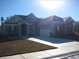 Gorgeous 3 bedroom, 2 bath home Hickory Model with finished 12x14 media/bonus room, theater lighting, wired for surround and wall mounted flat screen tv, concrete roof, copper accents, brick and stucco front w/ 6" vinyl siding on sides and rear, lush tropical landscaping w/ lighting, staggered cherry cabinets in kitchen, granite countertops, whirlpool gold appliances, ceramic in all wet areas, new 4" plank 3/4" real hardwood cherry floors throughout home including hallways and bedrooms, 10 ft. ceilings in GRroom,Formal DR, kitch and breakfast room, marble surround- propane FP, upgraded antique brass fixtures, 10" crown molding in LR & DR, custom wainscoting in DR, cherry cabinets and mop sink in utility room, security system, 6" trim and marble sills throughout; crown molding and tray ceiling in masterBR, extended heigth counter w/ double sinks in master, garden tub, walk-in closet marble surround extended shower w/ seat; extended side load garage; large lot w/ lake and fountain to enjoy your morning coffee out on the patio...Don't miss out on this home.... So many upgrades, this beautiful home is TRULY a must see!!!...couldn't build this home at this price!!!!!Brokered And Advertised By: Carolina Bays PropertiesListing Agent: Melissa Skelly