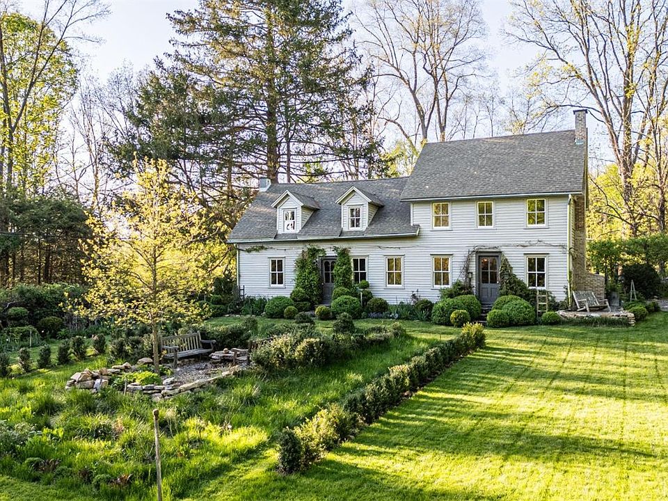 Evoking the charm of the English countryside, Oak Brook Farmhouse is a beautifully restored circa 1820 home featuring exquisite grounds and gardens. Beyond its editorial-worthy historic design, the home has been meticulously maintained with recent upgrades including a new roof, insulation, septic system, electrical work, and HVAC. Situated on a quiet, dead-end country road, the property also boasts a creek, outdoor pavilions, a summer cottage, and magnificent landscaping. Blending 19th century appeal with sophisticated design and modern amenities, Oak Brook Farmhouse is truly a storybook nature retreat.Throughout the home, original detailing is celebrated and highlighted, from the wooden beams and wide-plank floors to the door hardware, and seamlessly integrated with modern improvements. The expansive first floor features a convenient mudroom, a laundry room, a renovated kitchen, a sun-filled dining room, a living room with a fireplace, and a spacious full bathroom. Ascend to the second floor, where a stately primary bedroom awaits alongside three additional bedrooms and a full bath. The recently renovated third-floor loft area offers versatility as a home office, creative space, or guest quarters. Separate from the main house is a small summer cottage with a wood-burning stove, offering a wealth of possibilities.The grounds are a true horticultural masterpiece, featuring distinct beds and borders, as well as multiple seating areas. Enjoy a small orchard of eight fruit treesapple, peach, pear, and plumsurrounded by nectar-producing plants for pollinators, including agastache, allium, and foxglove. The thriving working garden boasts lavender, lilacs, peonies, iris, tulips, and a kitchen garden with rhubarb and asparagus. A brook meanders through the property, while multiple gravity-fed water basins aid in gardening. Additional outdoor features include a covered garden pavilion, an outdoor gravel patio, and an outdoor shower.Located in an exceptionally private location, Oak Brook Farmhouse offers guaranteed tranquility. Conveniently close to Kent, CT and other nearby upstate villages, the property is also a short distance to a plethora of nearby hiking trails and outdoor activities. Easy access to Metro North ensures a stress-free commute to NYC, making this property the epitome of a city escape at its finest. A testament to timeless appeal, a celebration of nature, and rich history, Oak Brook Farmhouse is ready to welcome its next fortunate steward.