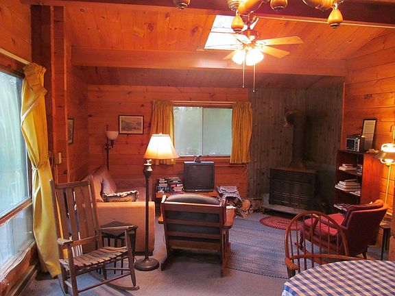 WOODSY RETREAT- Log home, 3 bedroom, 1 baths, freshly stained log home with new steel roof, family room in basement, wood stoves up and down, located on a quiet dead end road, walking distance to state land and hiking trails.