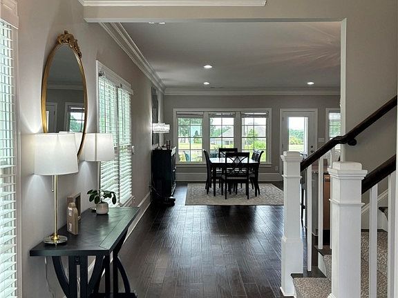 Charming home ON THE GOLF COURSE in Gated Resort style community! Open concept floorplan with gourmet Chef’s kitchen that features large island with room for 4, upgraded cabinetry with trash can pull out and pot drawers, granite countertops, above and below cabinet lighting, very spacious pantry, and SS appliances including a 5 burner Gas range. This popular plan is great for gatherings with Fireside Family Room for cozy romantic evenings. This beautiful home features owner’s suite on main with an abundance of space; you’ll love the access to the laundry room through the owner’s closet! The laundry has plenty of cabinets, a large deep laundry sink, and a generous granite counter for folding area. Owners’ bath has an enormous shower and dual vanities. There is an additional guest suite on the main level with a full bath. No carpet throughout - All upgraded hardwood flooring everywhere! Upstairs has a gracious guest suite with large bath, oversized Loft with study, and SPECTACULAR views of the golf course!!!! Sit back and enjoy the fabulous views on the very spacious covered screened in porch which overlooks Black 6 of The Chancellors Black course! The screened porch has 2 doors for convenience with one door leading to a grilling area with stone pavers. Two car garage with opener and dedicated space for your golf cart! Two HVAC systems. Lawn maintained by the community association - quarterly fee is $514.66.