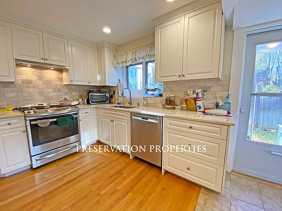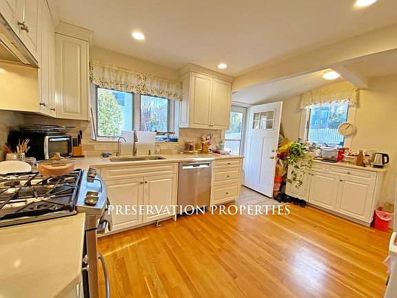 Available for 1/1/23. Wonderful opportunity to live in Newton near the Commuter Rail, Pike and so many shops & restaurants! 2BR, 1BA well cared for 1st floor unit has renovated kitchen has tiled back-splash, lots of pantry storage and back door that leads out to garden area. Central A/C. Lots of sun pours into the spacious living room & formal dining room. Ornamental fireplace and hardwood floors throughout. Private laundry machines and storage in basement. Driveway parking available. Property ID 25492