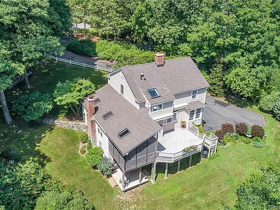 Best of in-village living, just steps to shops, restaurants, park, library, museums, and theaters, yet set back privately on 2.39 tranquil acres bordered by scenic nature conservancy. Just a stone's throw from the landmark fountain, this picture perfect home sits back at the end of a private lane, drenched in natural light with panoramic views of nature from the rear tiered decks and screened porch. Light, bright and open with 2,513 square feet, 3 bedrooms and 3/1 baths, including optional guest suite in the walk-out finished lower level with sliders to the lower deck/backyard. Built in 1984, the current owners have invested approximately $200K in updates since 2007 including interior remodeling to open the living room/dining room and kitchen/family room; new roof; new HVAC; windows; $40K in top of the line marble master bath with free standing soaking tub and frame-less shower; hall bath update; kitchen remodel; painting; landscaping and fencing. The open floor plan features the inviting living room with fireplace, built-ins, crown molding and hardwood, open to the dining room for easy entertaining. The stunning kitchen features cherry cabinetry; stainless appliances including Liebherr refrigerator, gas range, and wine fridge; sunny breakfast area with French door to the rear deck; and custom built display shelving/cabinetry; open to the adjoining family room with beamed and vaulted ceiling, ceiling fan, gas fireplace, skylights, built-in bookshelves/cabinetry, and French doors to the charming screen porch. Don't miss the virtual tour/floor plans.