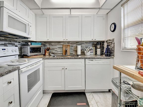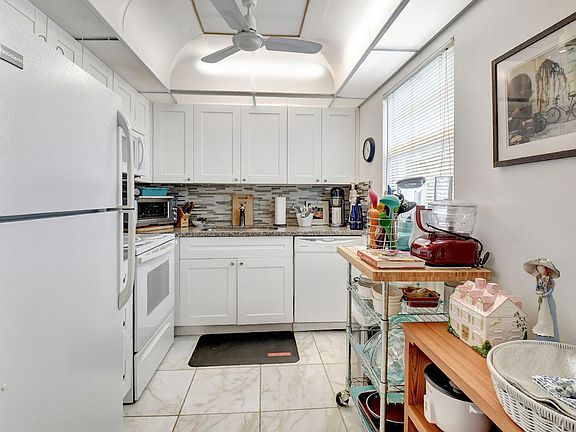 Discover your new retreat in the heart of Boca Raton's coveted 55+ Century Village! This beautifully remodeled 2-bedroom, 1.5-bath corner unit boasts a fresh and stylish interior with a completely updated kitchen featuring brand-new appliances, sleek countertops, and contemporary cabinets. Every inch of this home, including the enclosed patio, is tiled, creating a cohesive and low-maintenance space perfect for relaxation. Both bathrooms have been elegantly updated, with a glass-enclosed stall shower to be completed soon. Freshly painted and truly move-in ready, this property is more than just a home--it's a lifestyle. Enjoy Century Village's vibrant amenities, from pools and fitness centers to social events and shuttle services, all within a lush, well-maintained community.